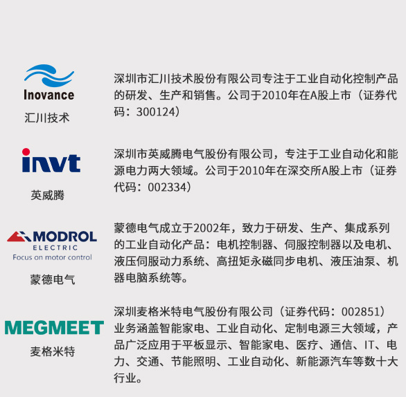• 匯川、英威騰、蒙德、麥格米特
