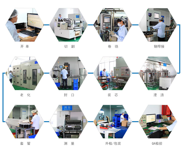 ? ? ? ? 螺栓型電解電容的生產工序包括開單、切割、卷繞、鉚焊接、浸漬、灌膠裝配、封口、老化、套管、測量、外檢、包裝、一致性檢驗等工序。